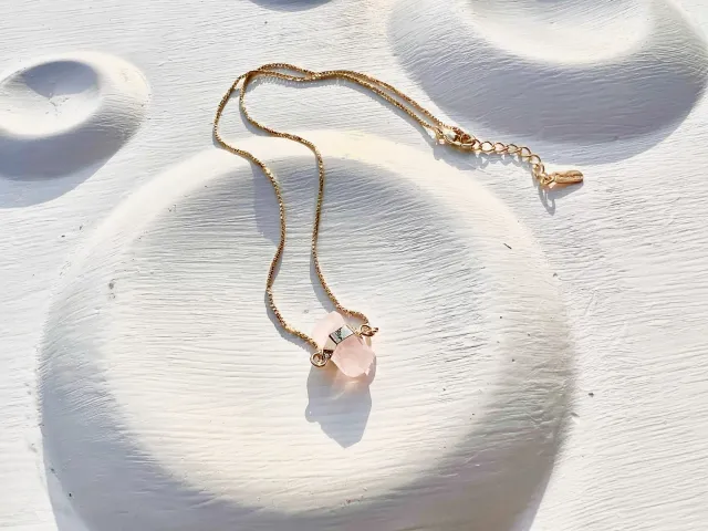 Vibrate the energy of crystals with the Nia necklace from Mimppy. Rose quartz is known as the stone of love and gratitude, and it is also the stone of self-love, evoking self-confidence and self-worth.