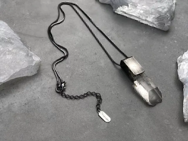 The Pure necklace is made of light silver plating metal and is a unique and exclusive Mimppy piece. The pendant is a light silver-plated plate and a natural crystal.